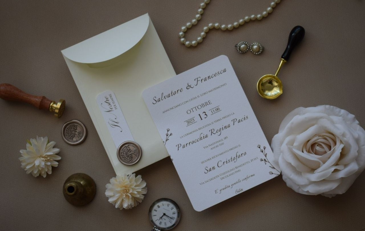 Celebra il tuo giorno speciale con eleganza e un tocco di artigianalità. Ogni partecipazione è creata con cura e passione, per offrire un invito che rispecchi il tuo stile e la tua personalità.