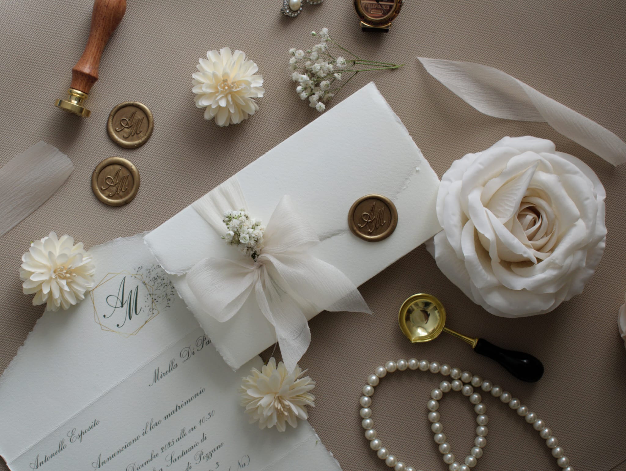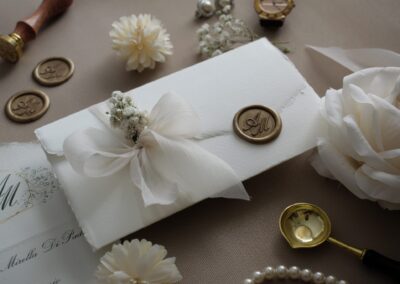Scopri l’eleganza senza tempo della nostra partecipazione in Carta d’Amalfi, perfetta per rendere il tuo evento indimenticabile. Questa partecipazione è realizzata con carta di alta qualità, prodotta artigianalmente secondo antiche tradizioni, che conferisce un aspetto unico e raffinato.
